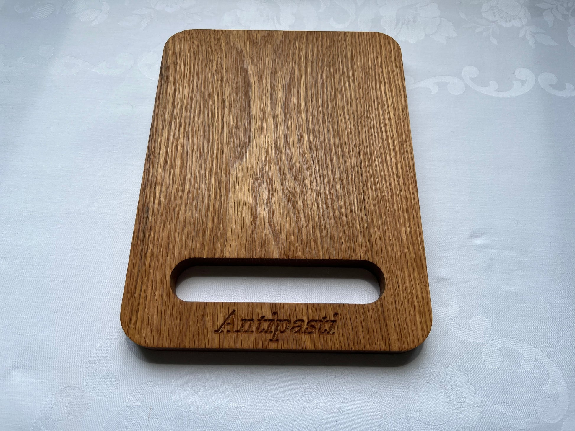 Solid Oak charcuterie board / chopping board engraved "Antipasti"